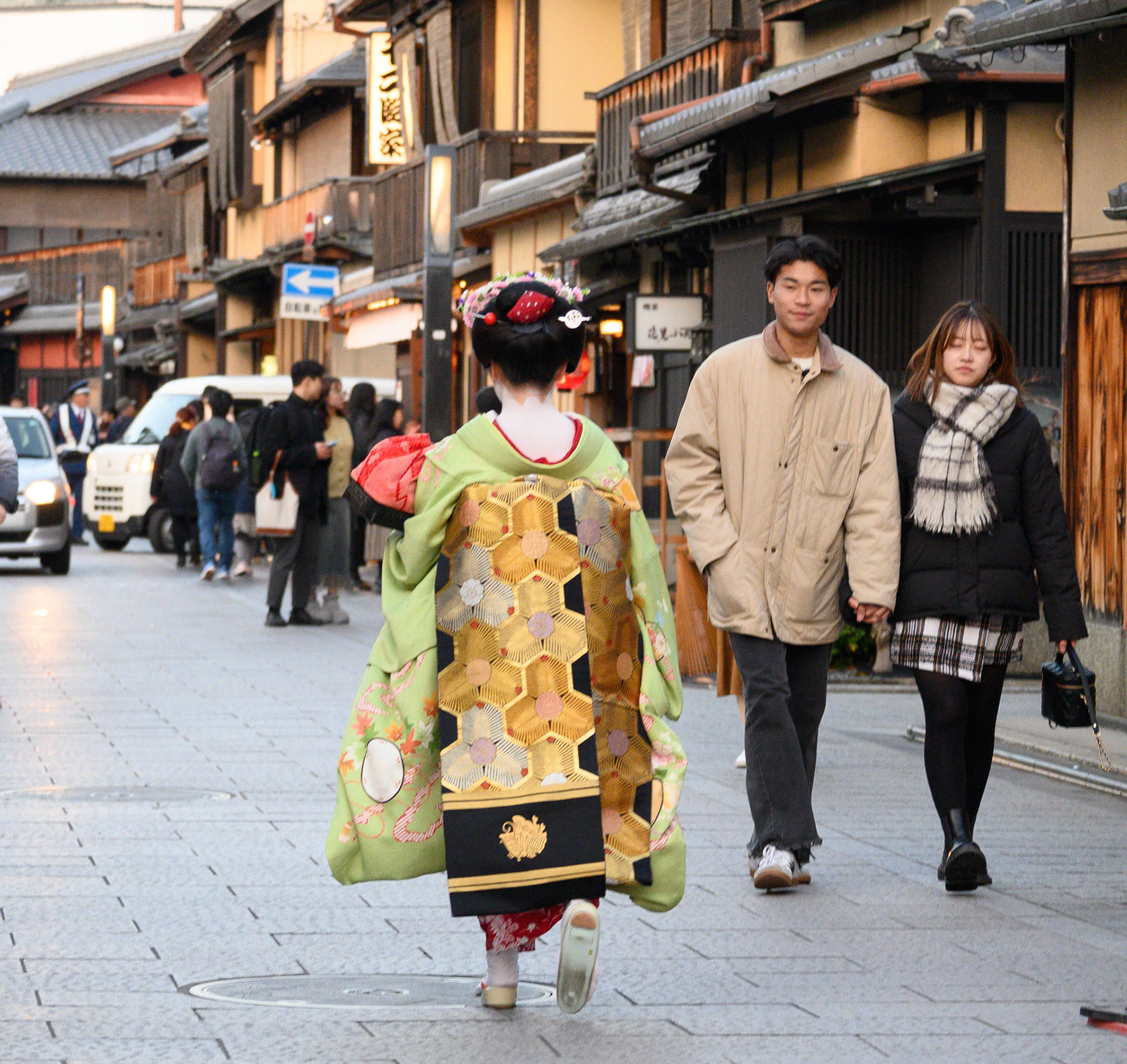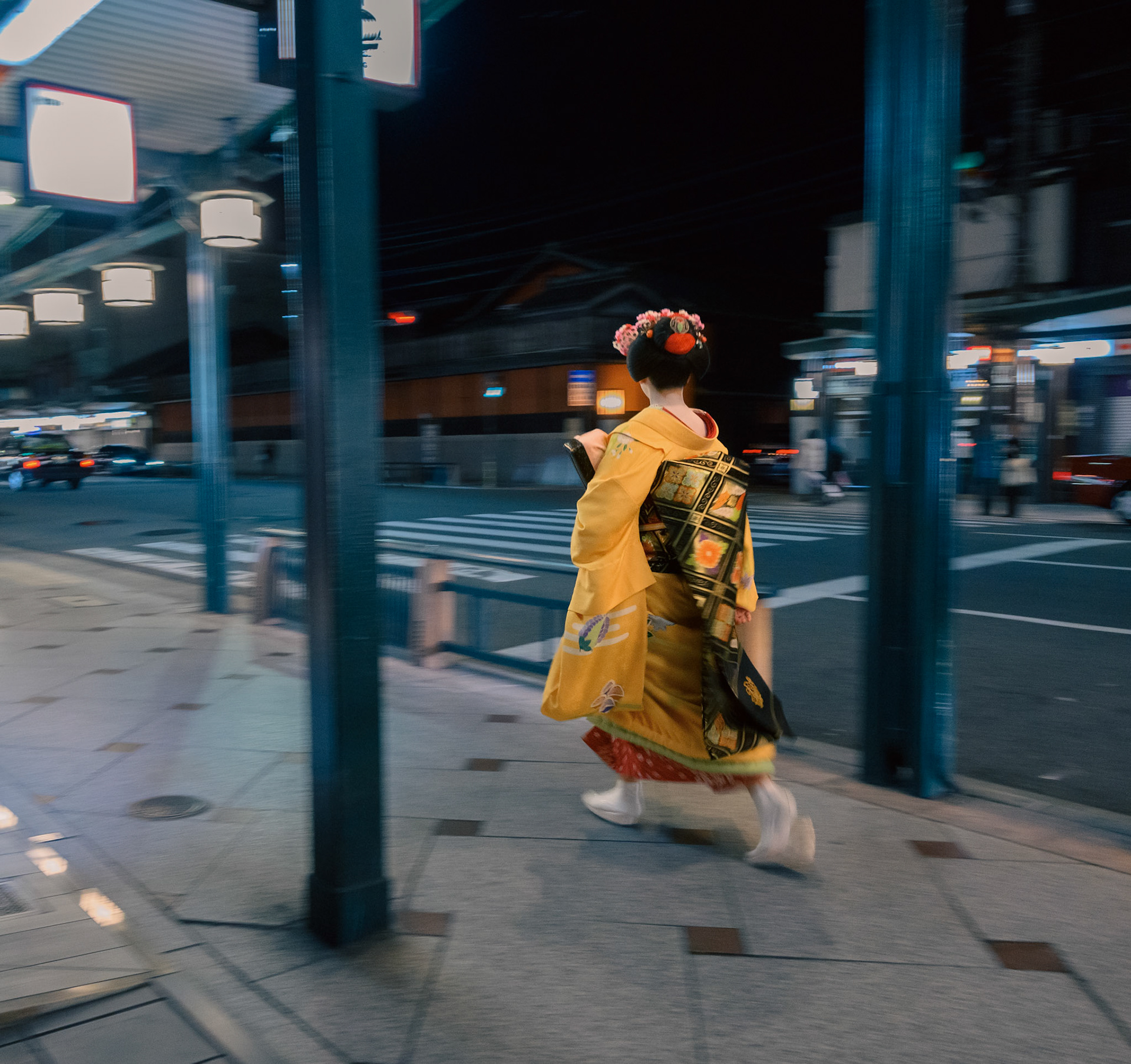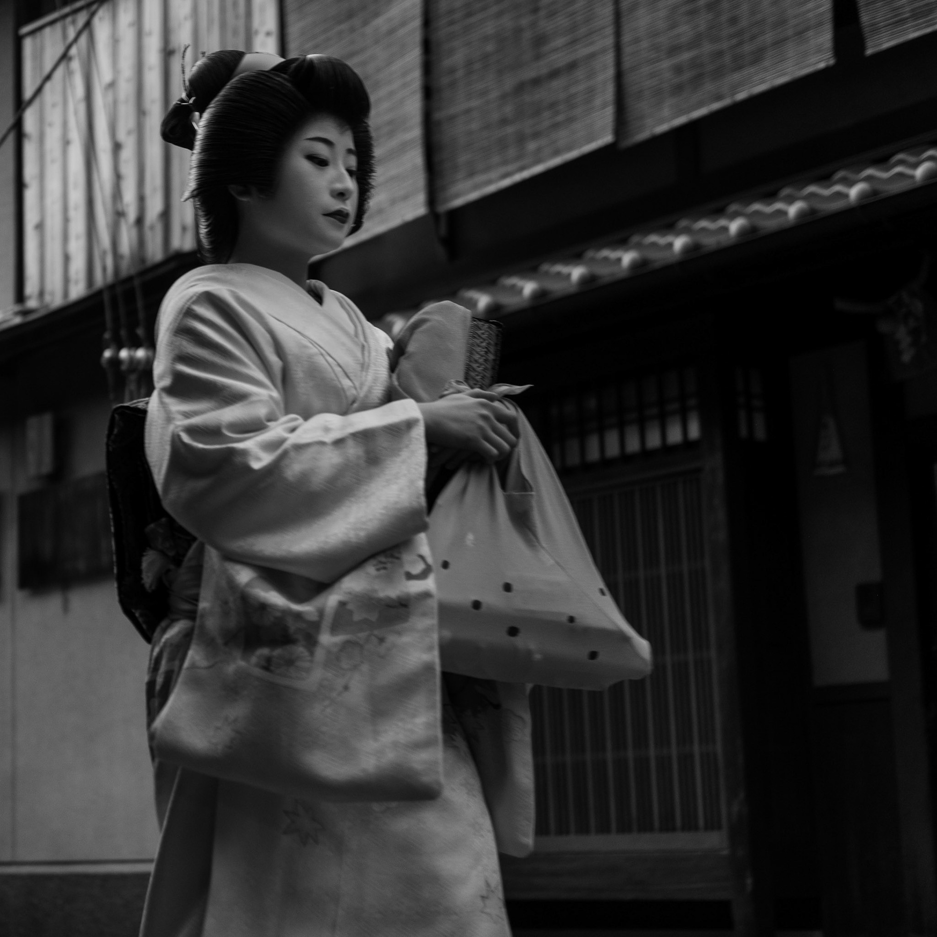 Maiko Geisha walking through the Gion district, going to tea ceremonies.