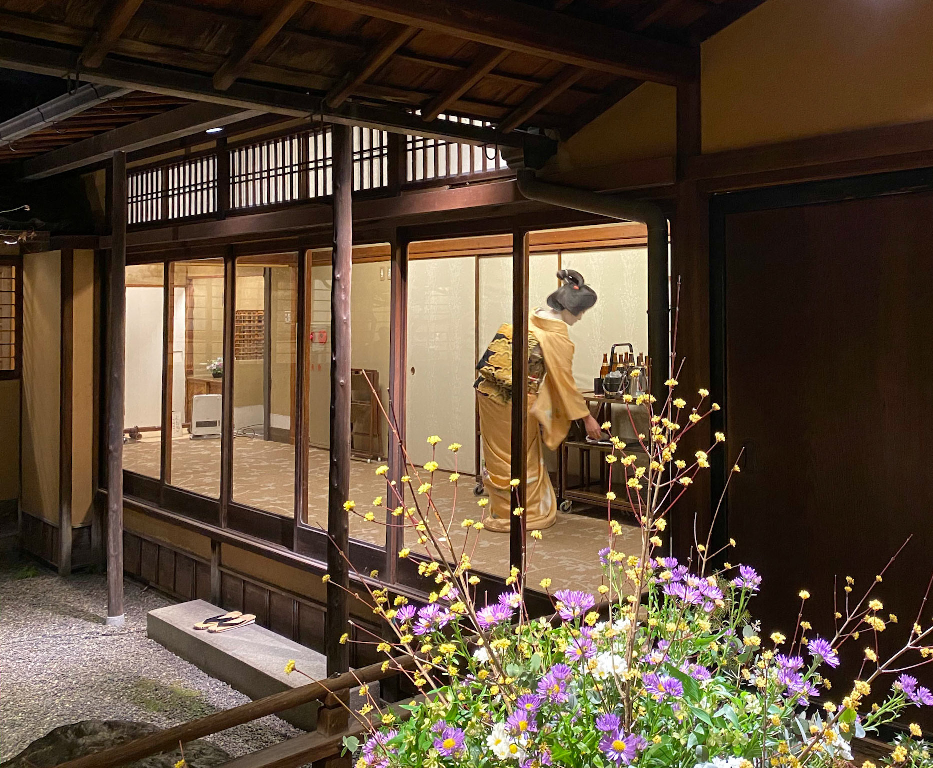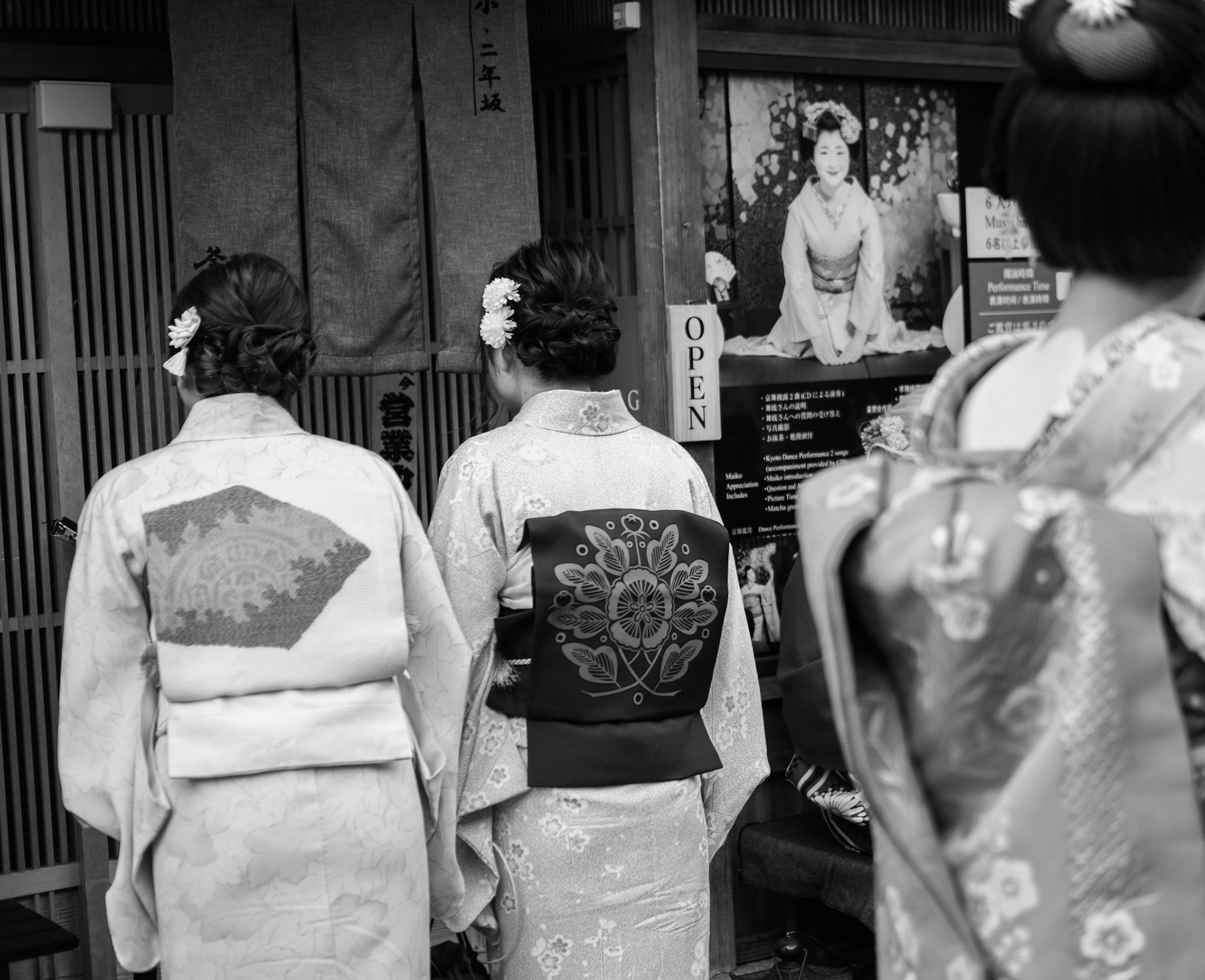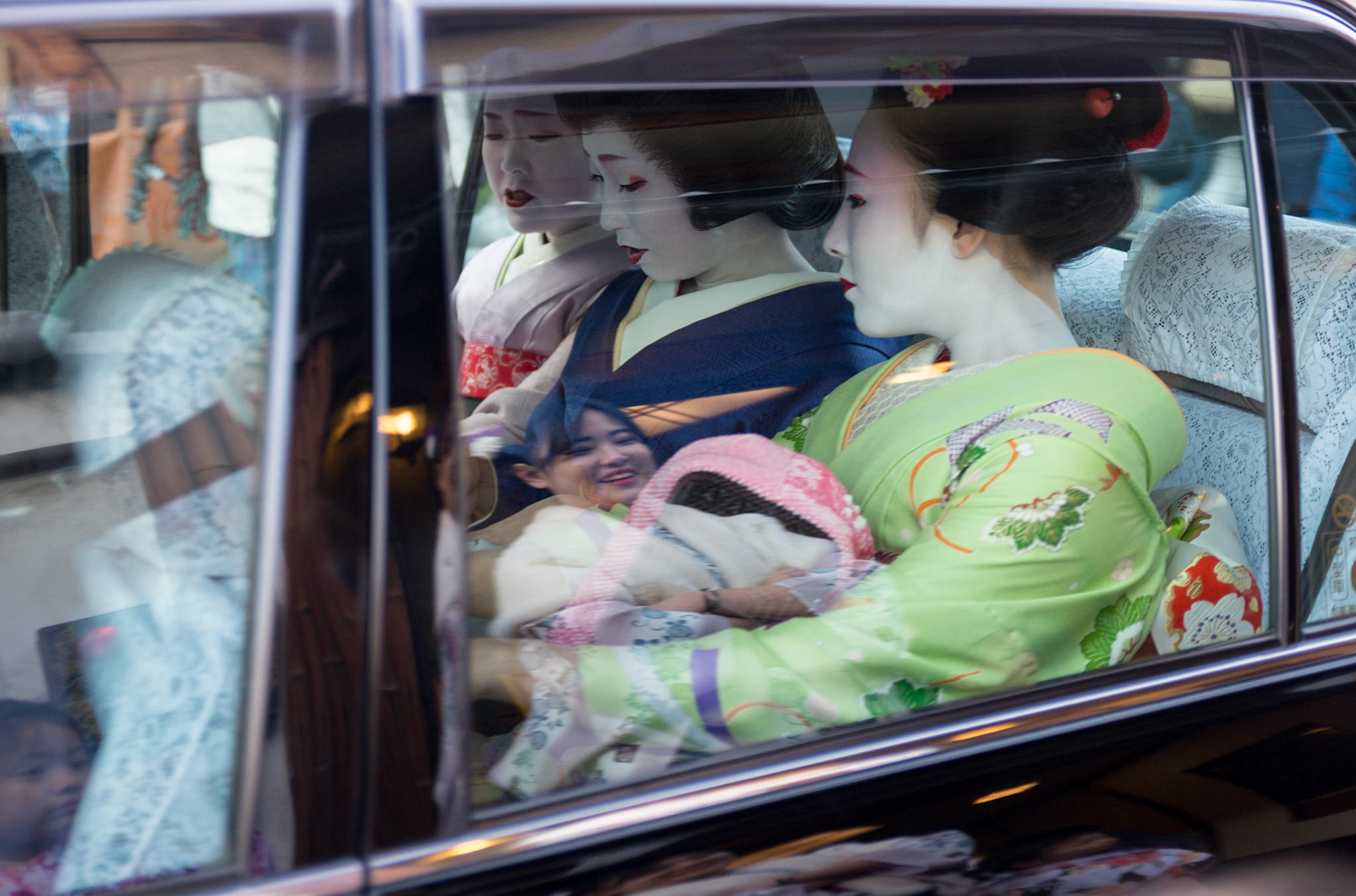 Maiko Geisha walking through the Gion district, going to tea ceremonies.