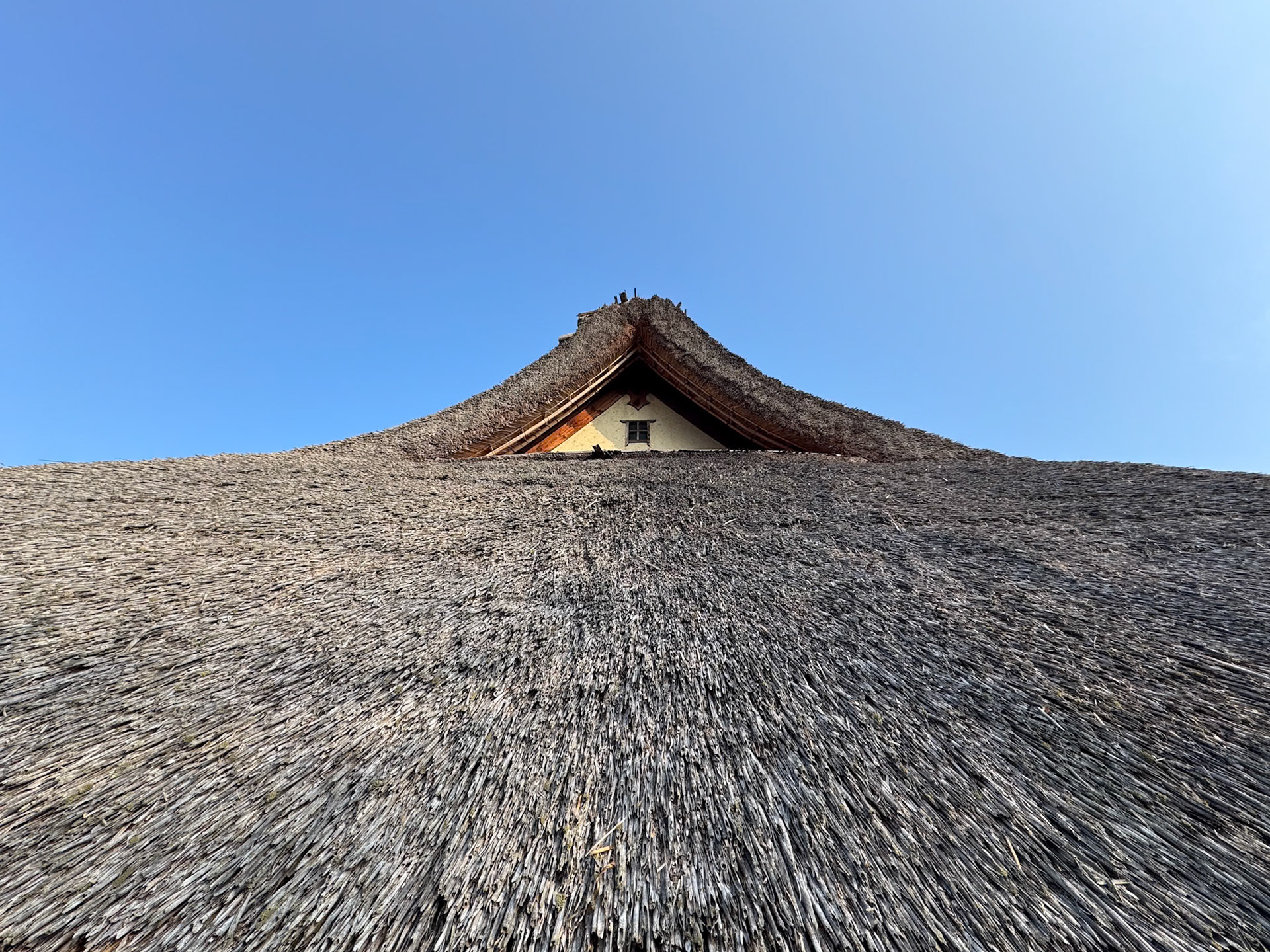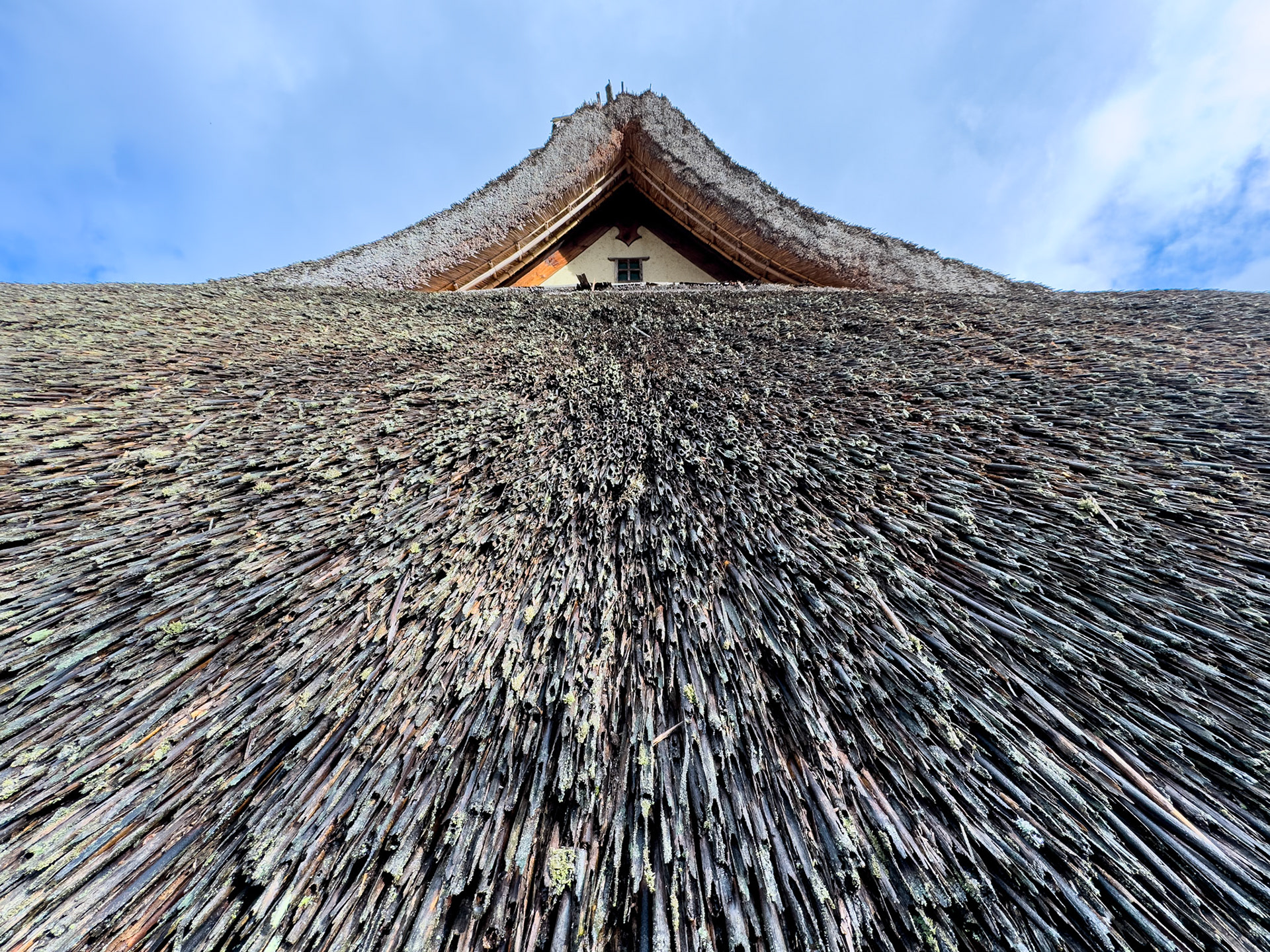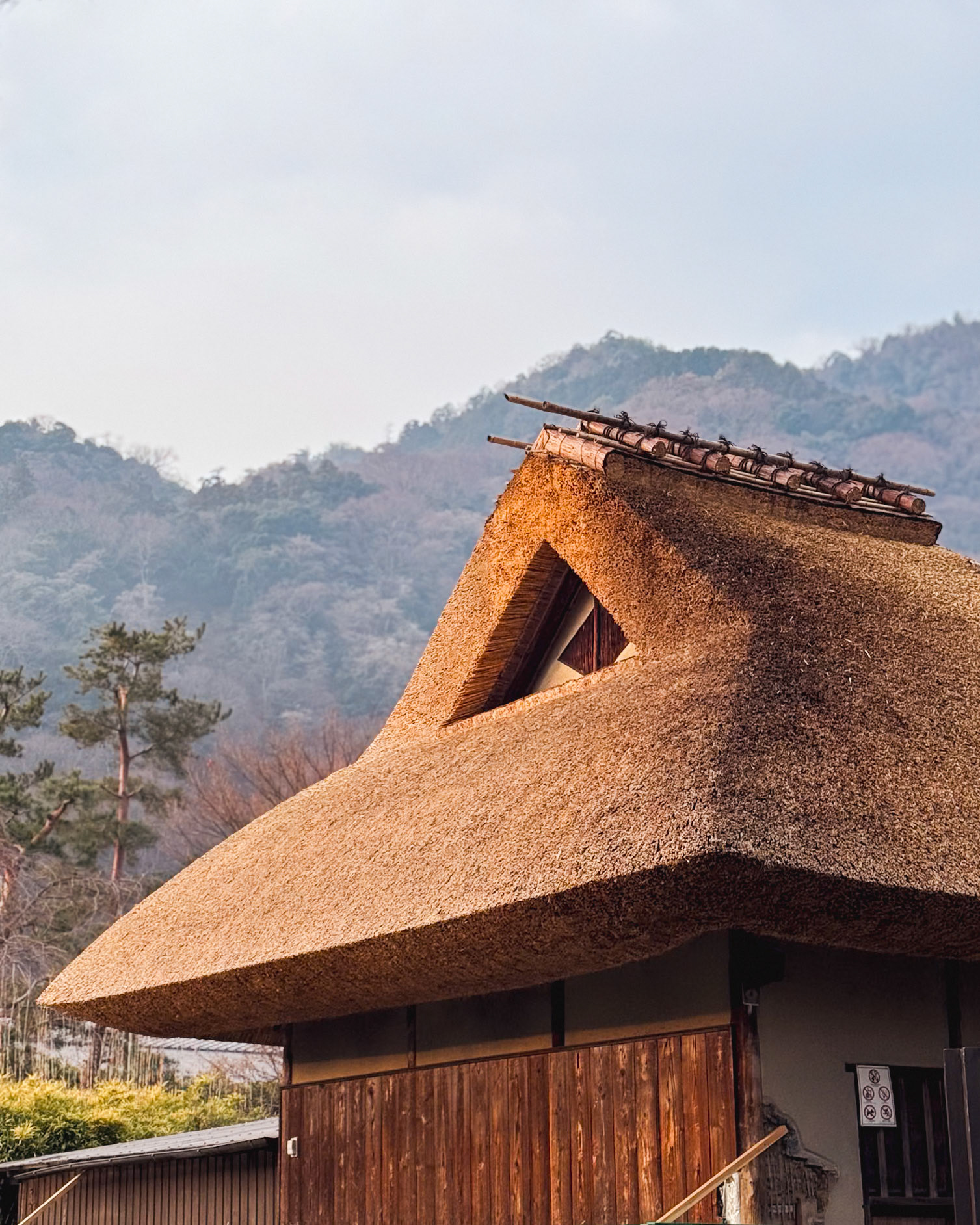 Traditional Japanese roof design with curved tiles.