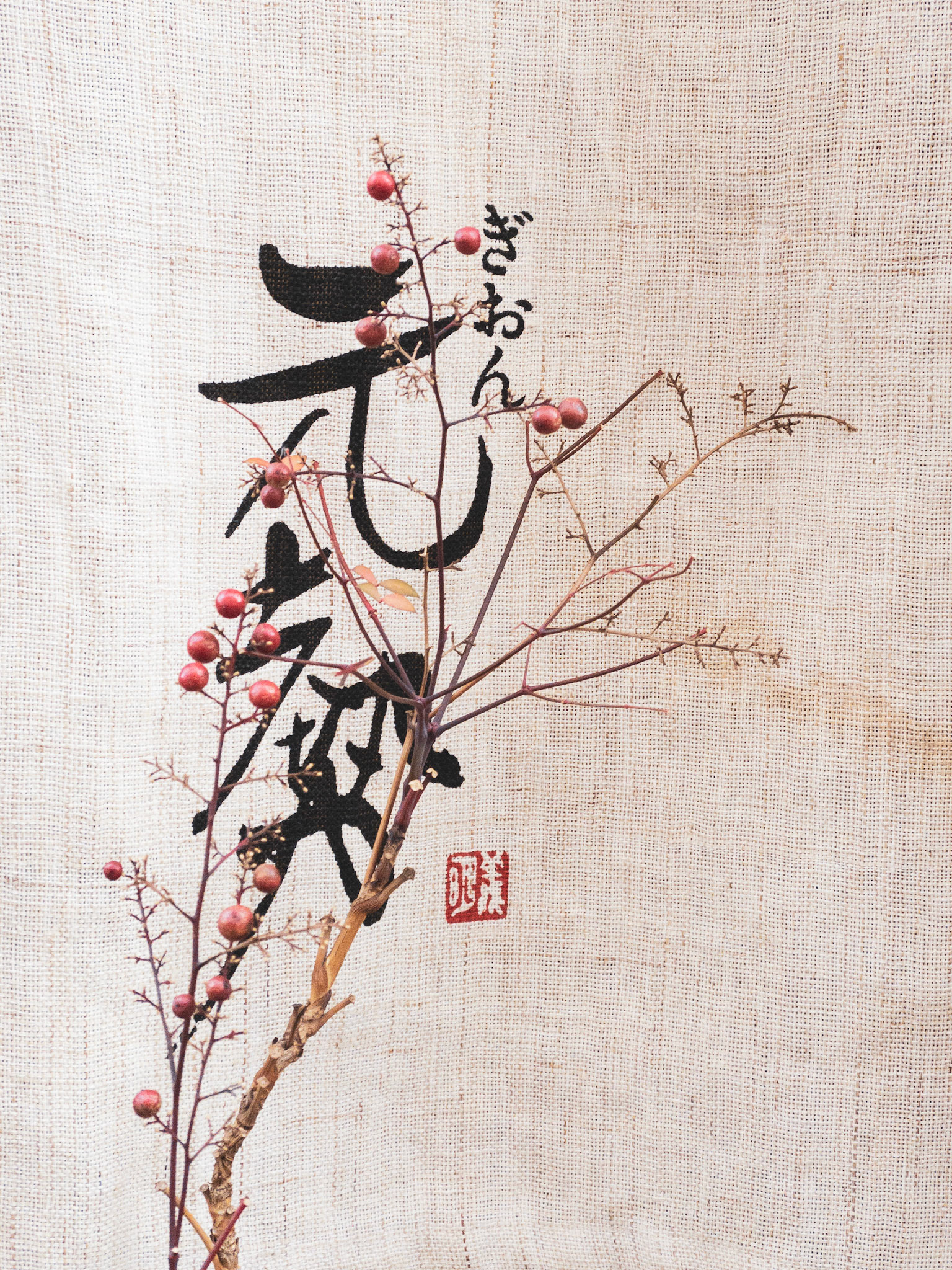 Aritistically designed lantern advertising a tea house in Kyoto.