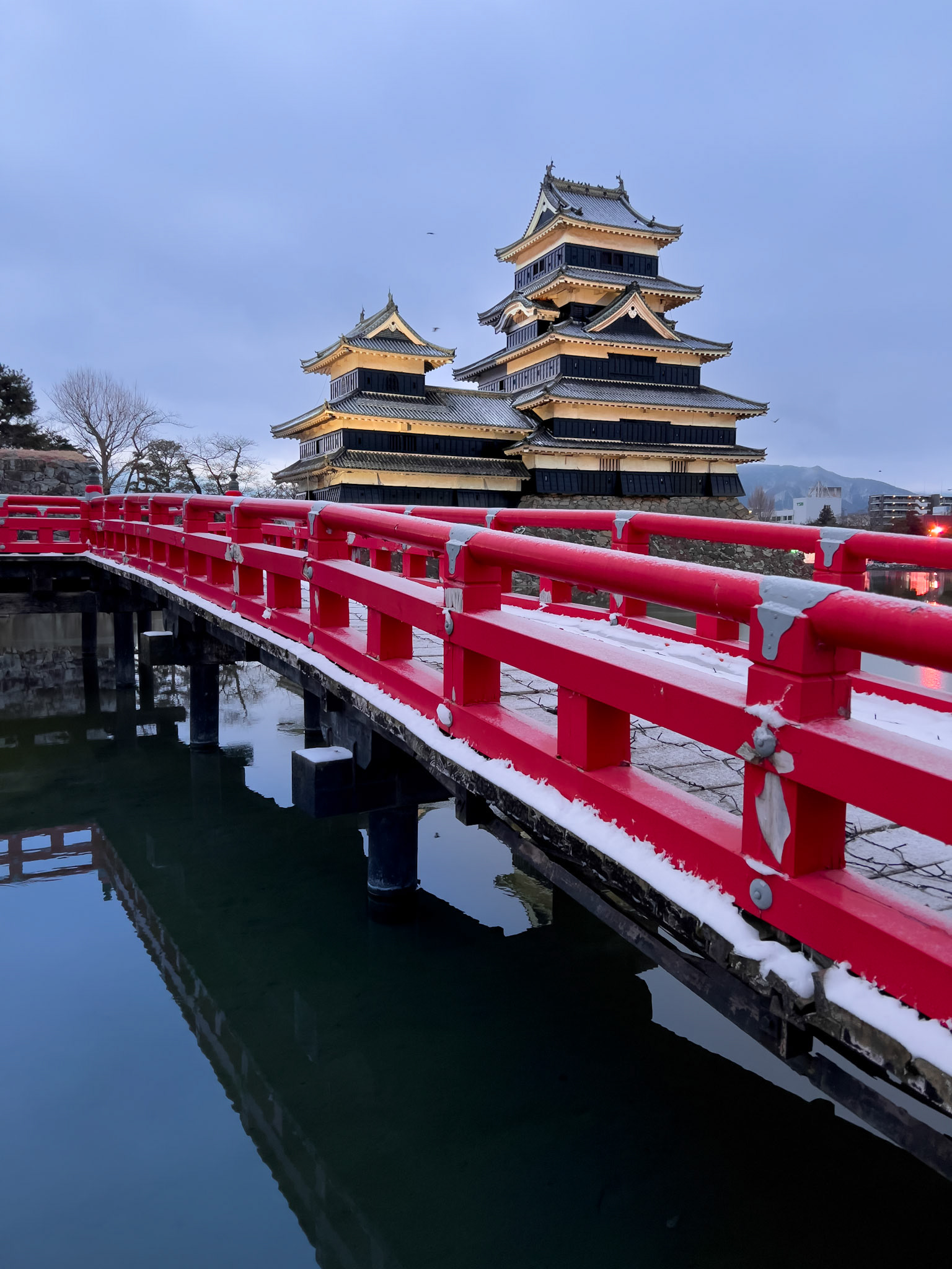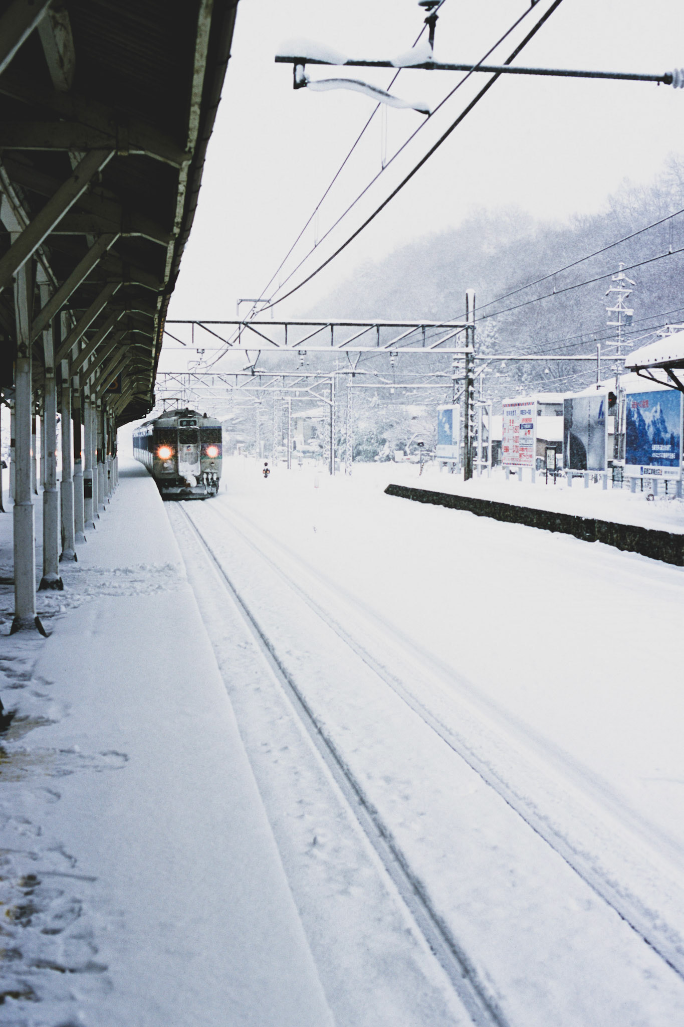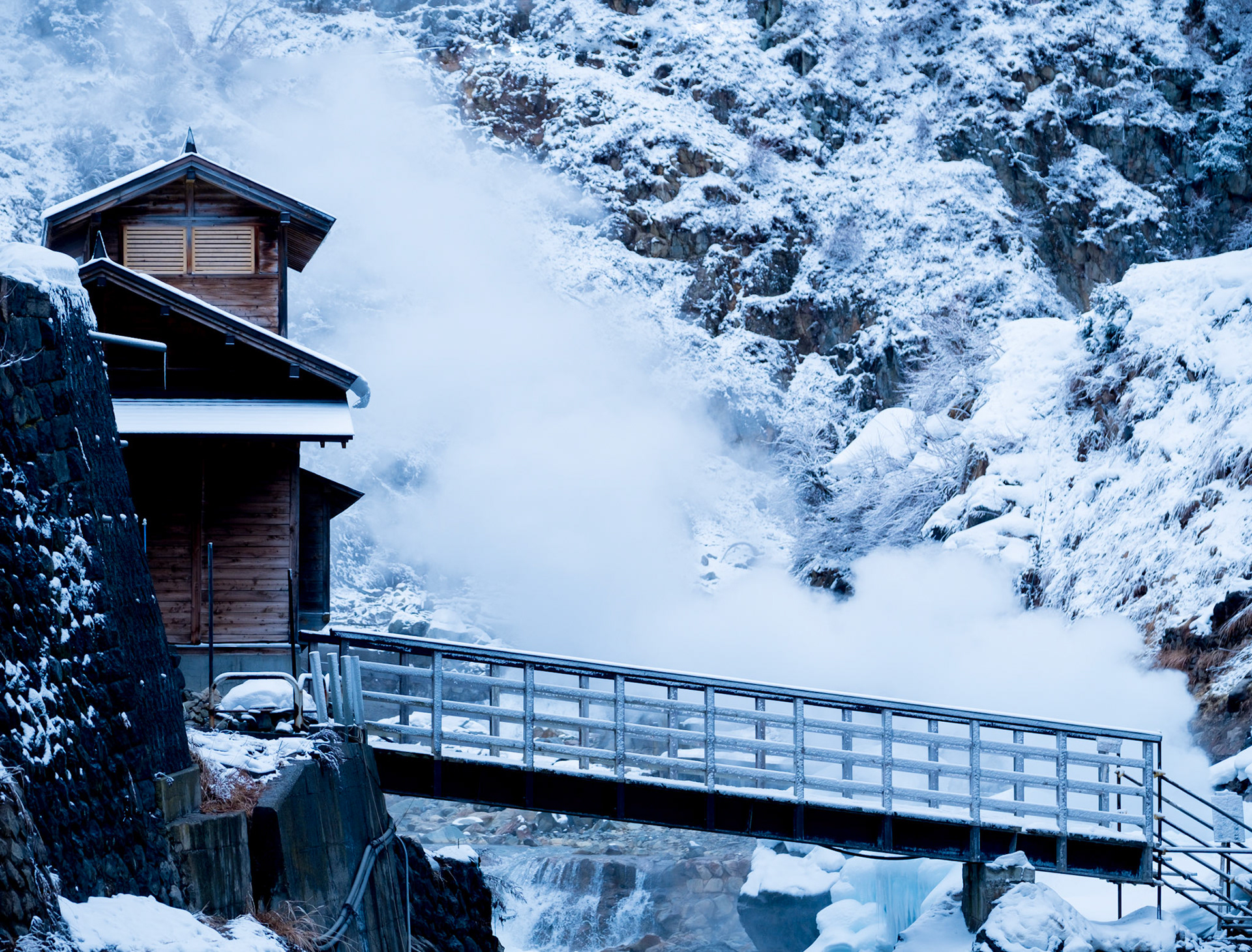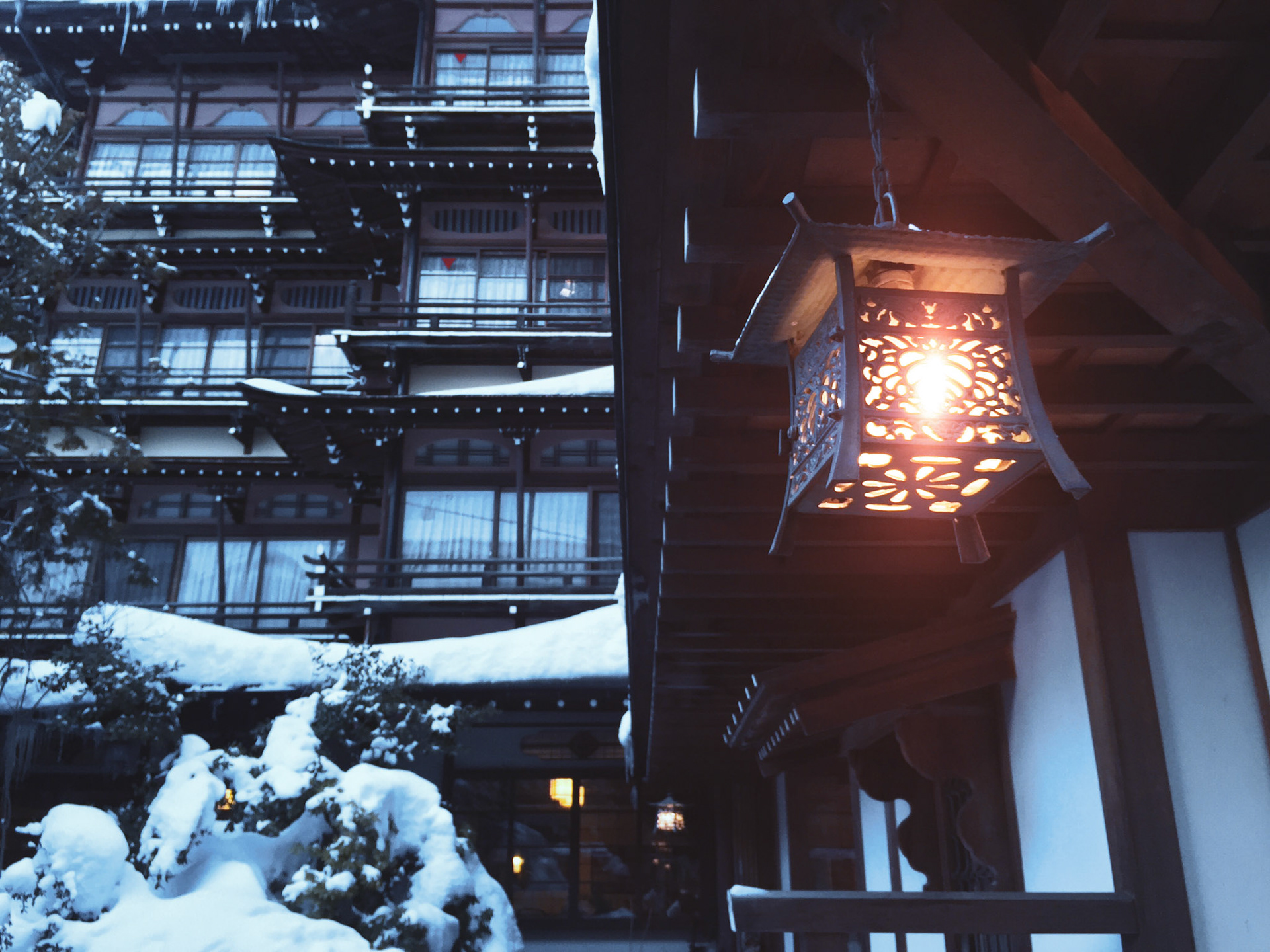 Snowy exterior of a traditional Japanese Hotspring Inn