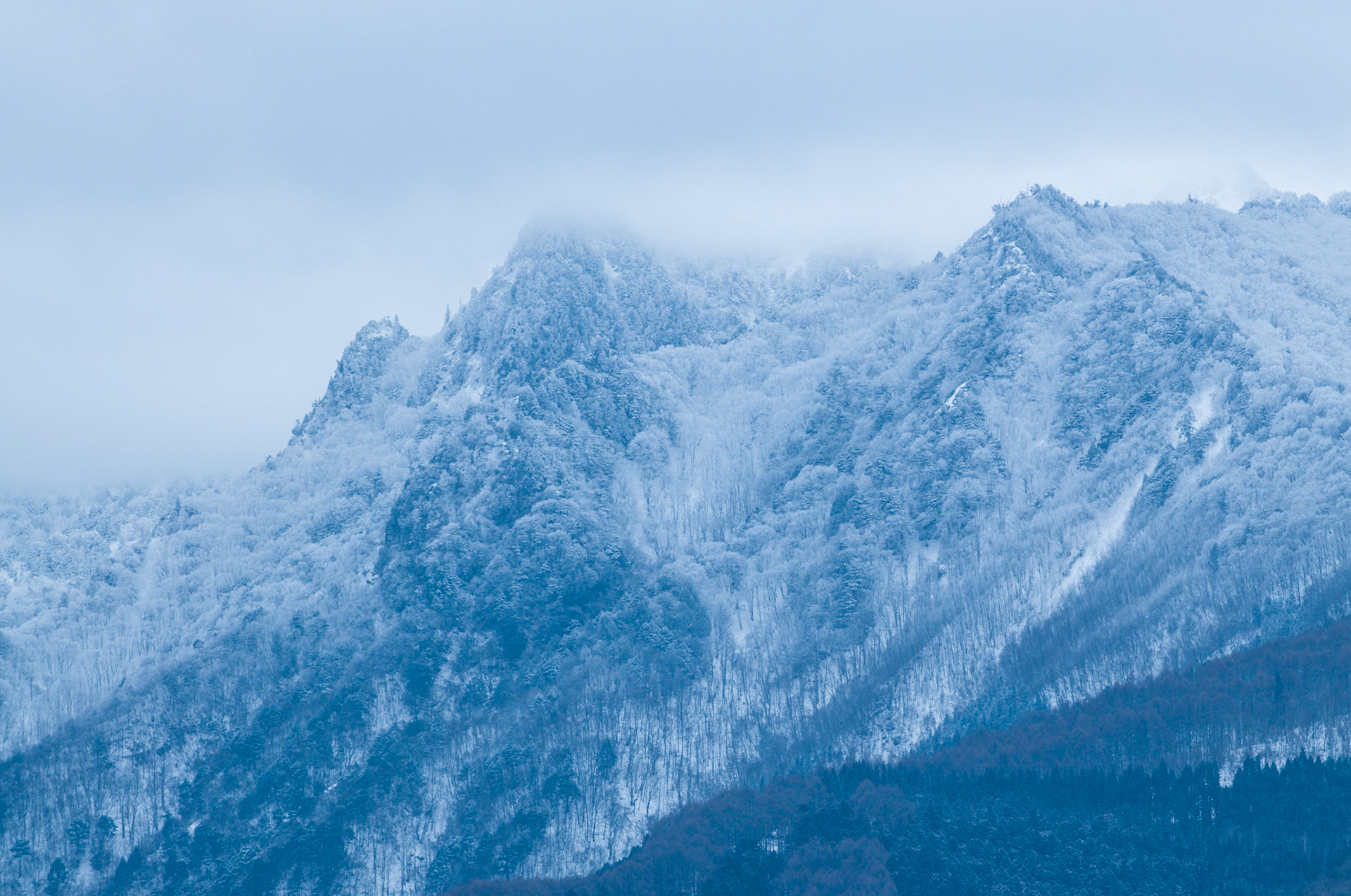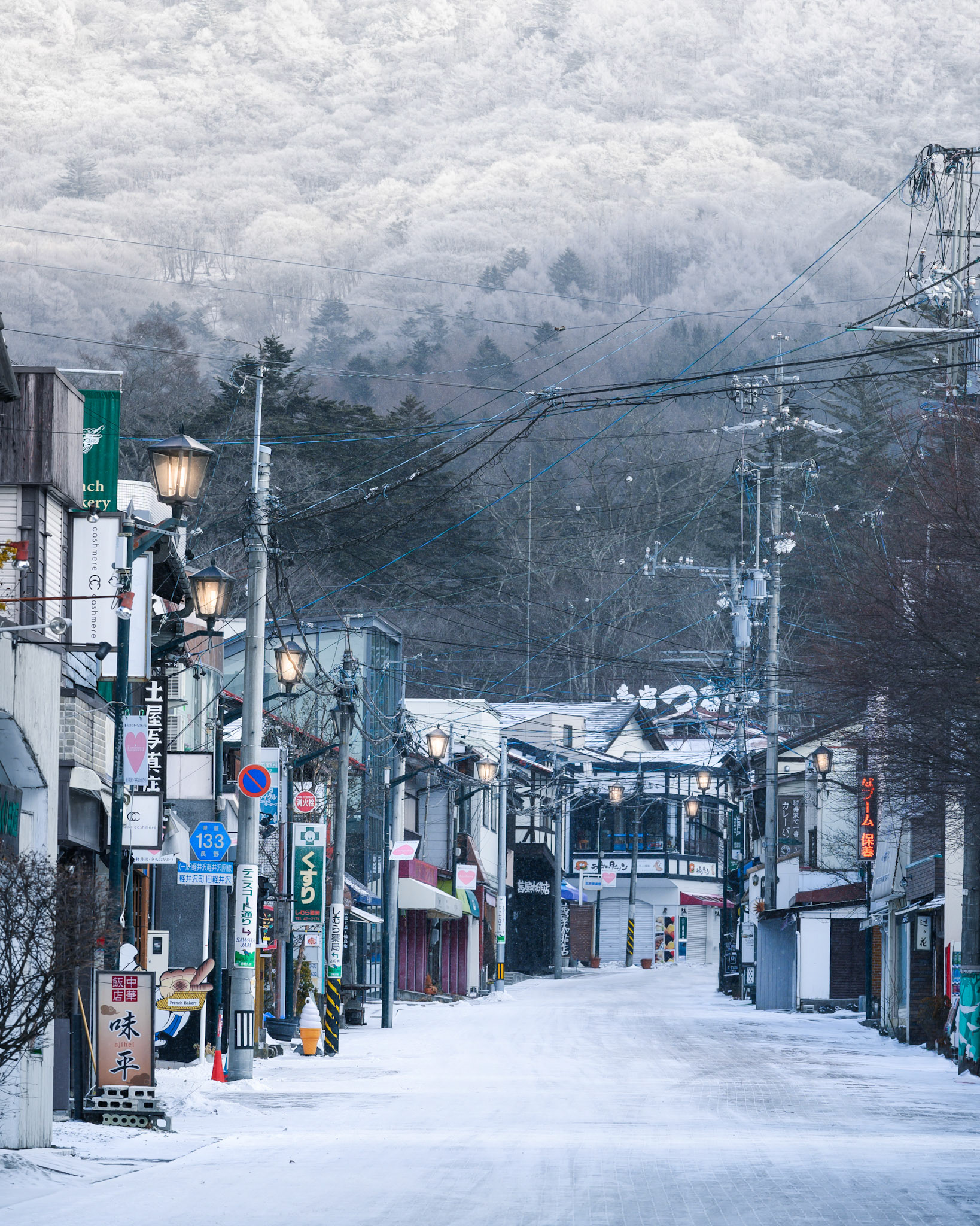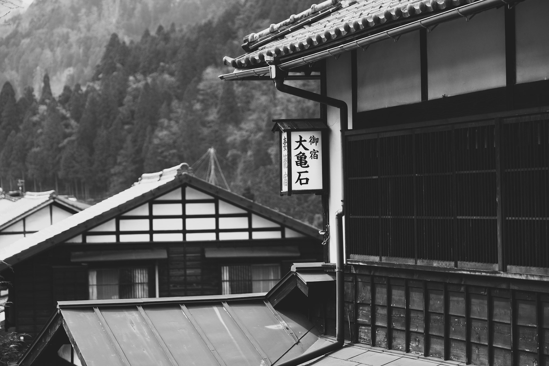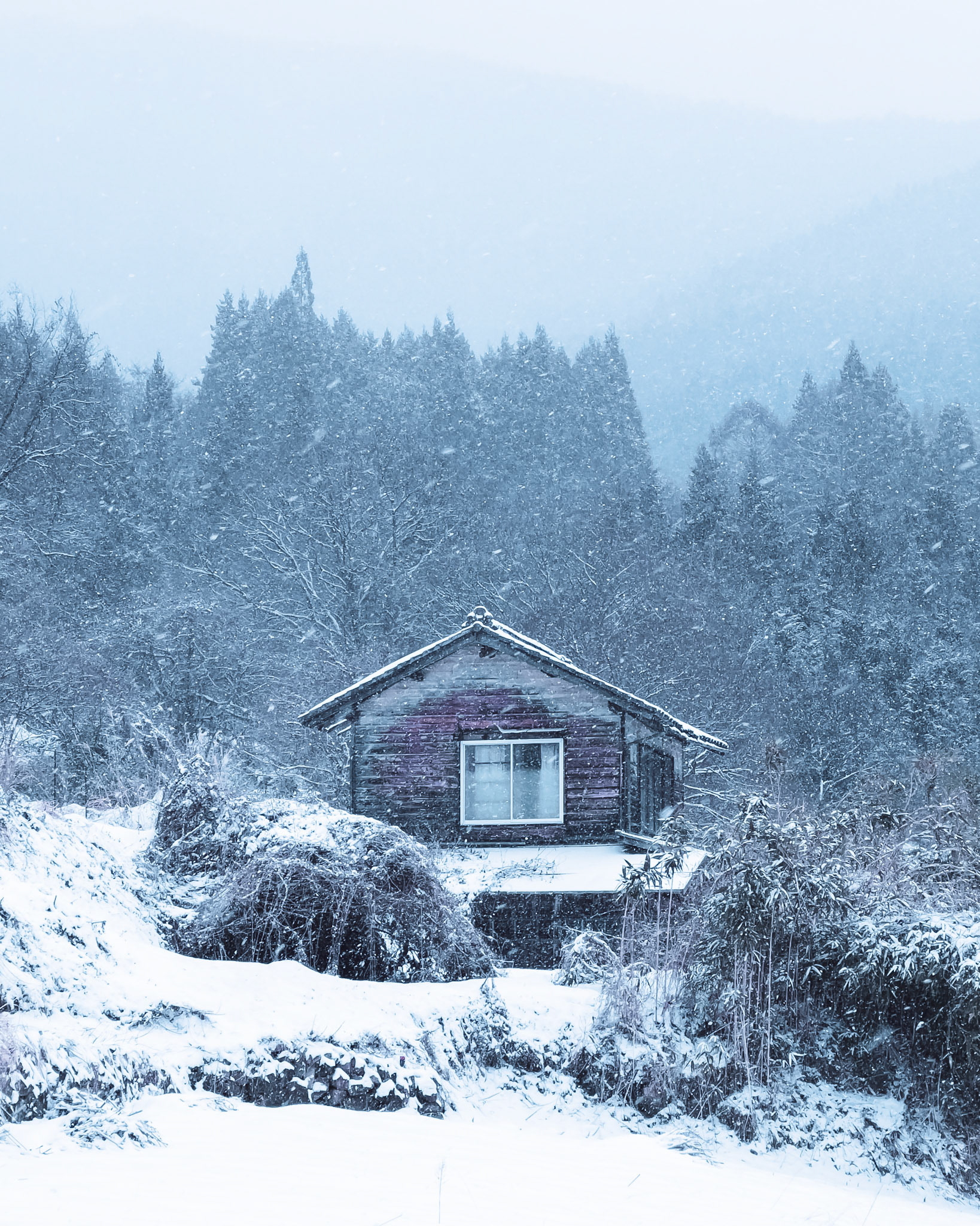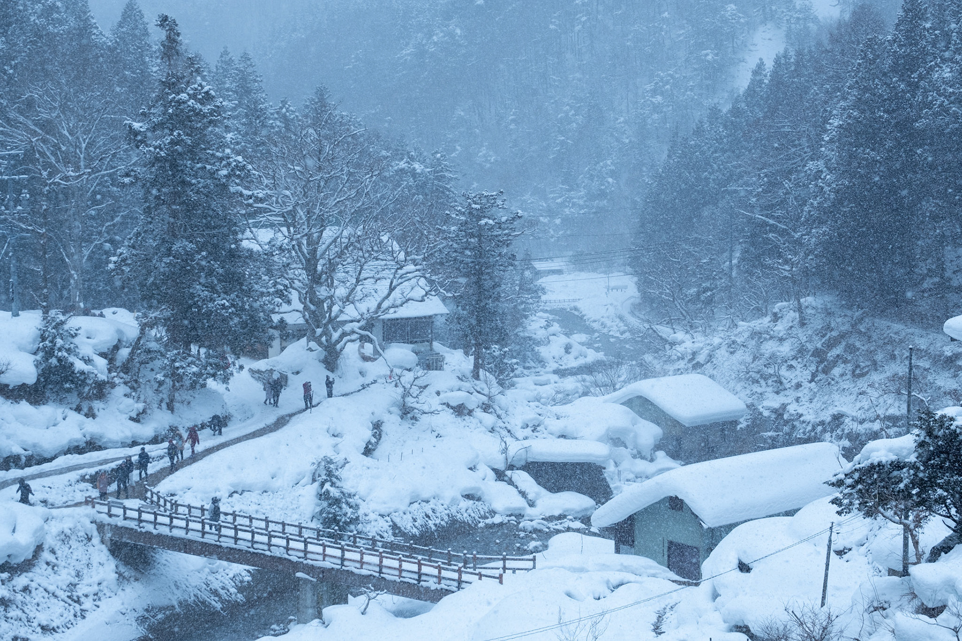 Snowfall in the picturesque mountain hotspring village of Shibu Onsen