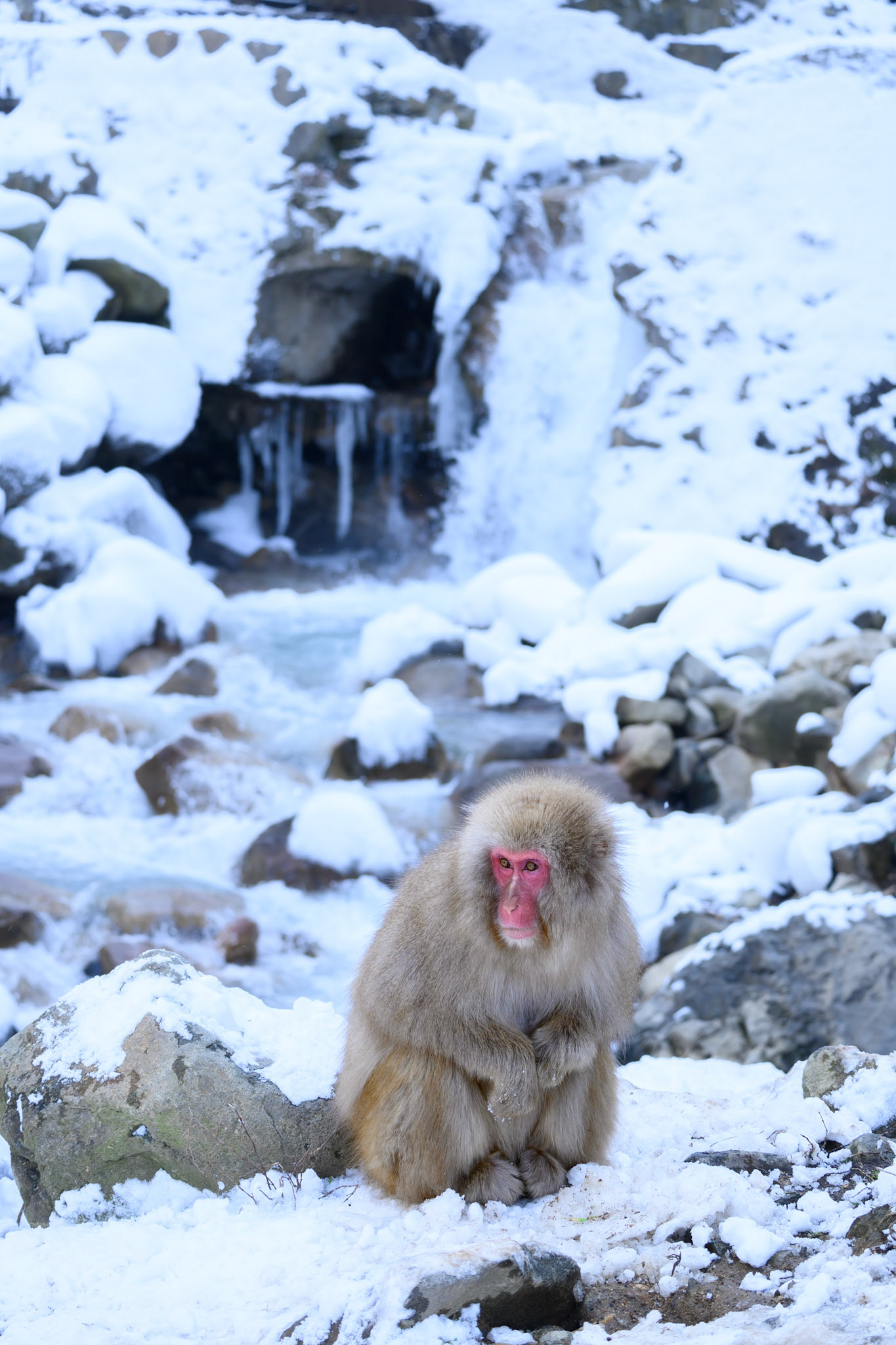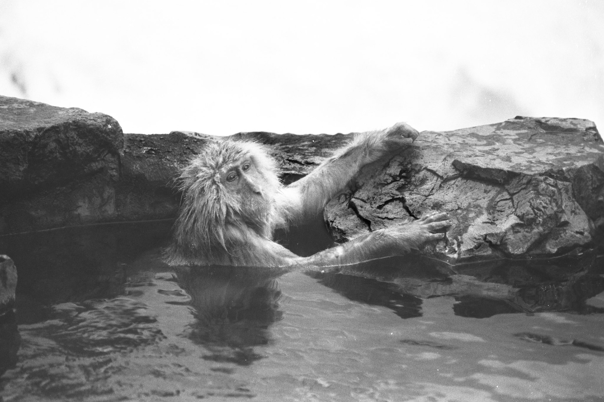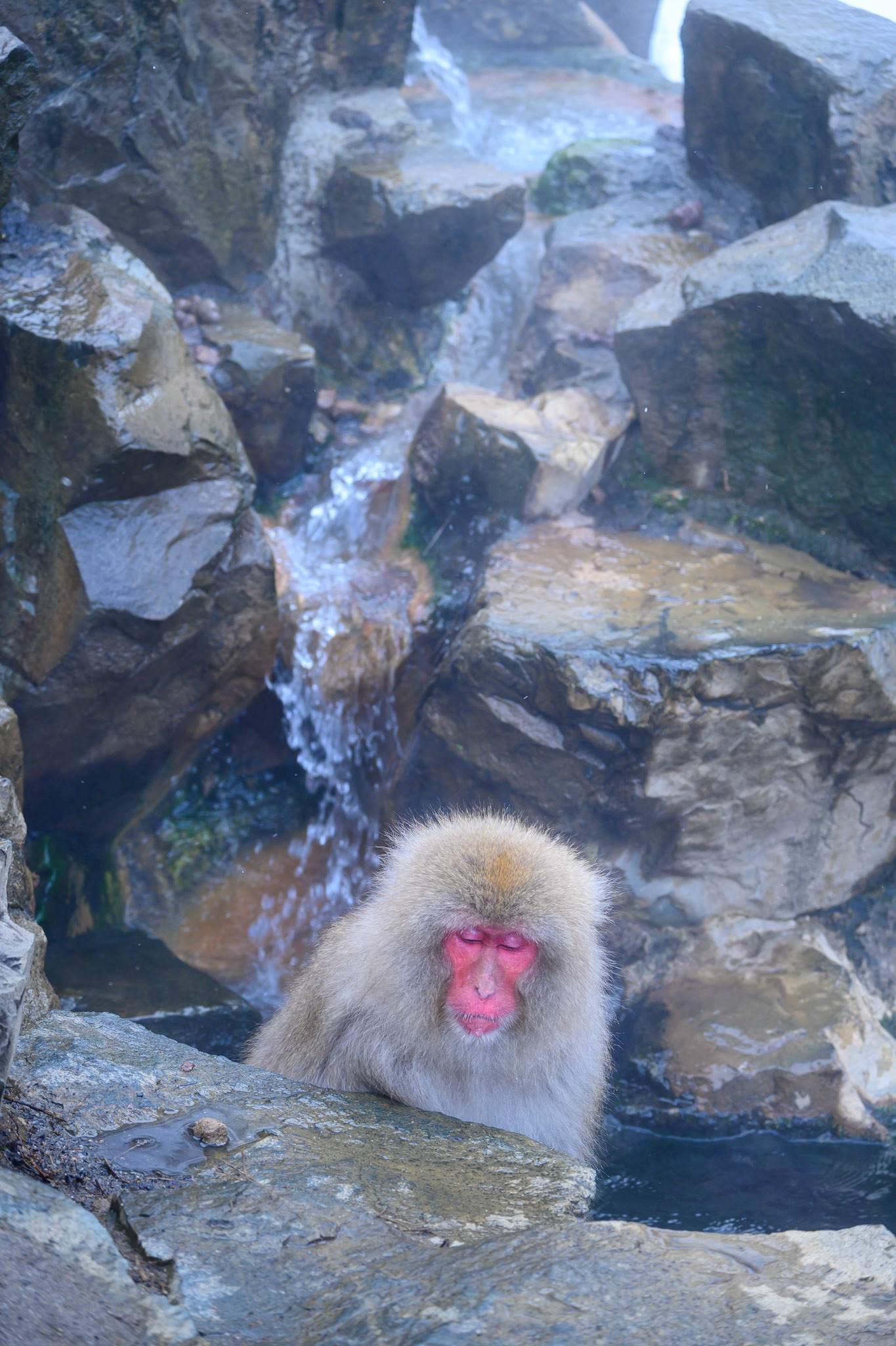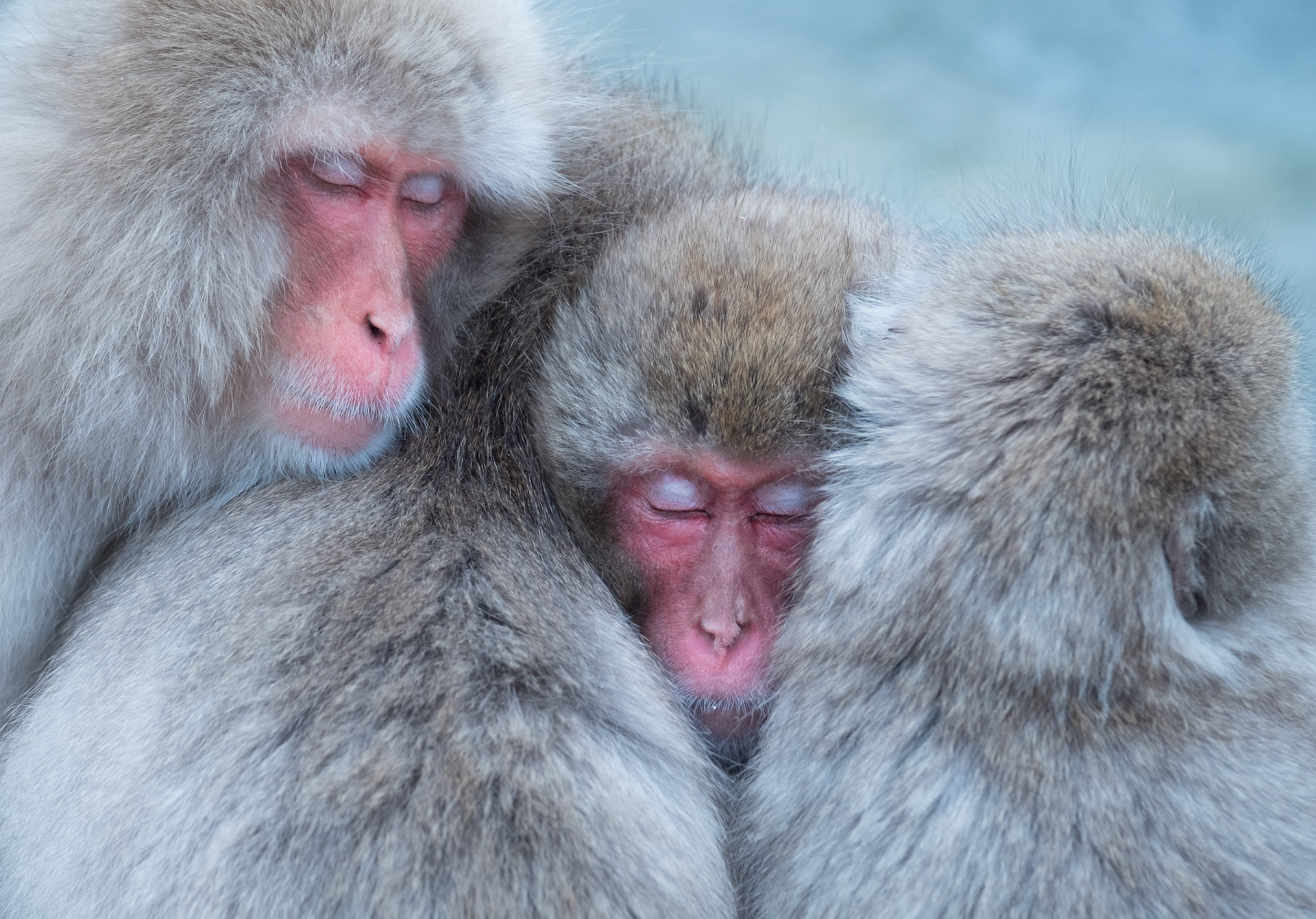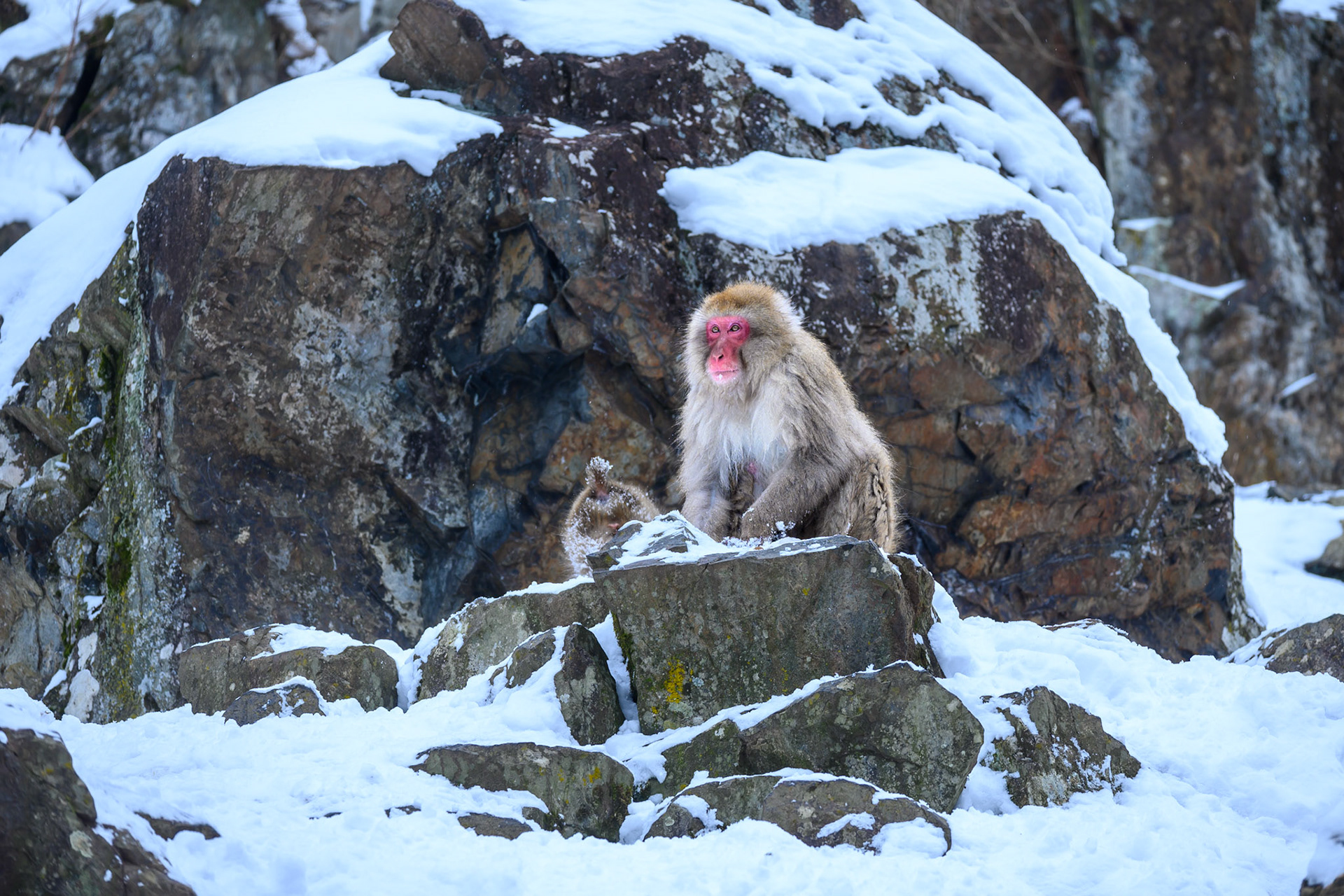 Japanese Snow Monkeys in the winter. To stay warm they often soak in the hotspring water.