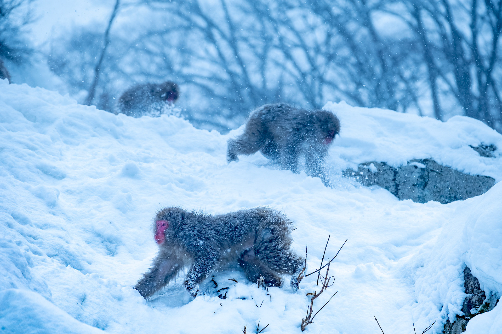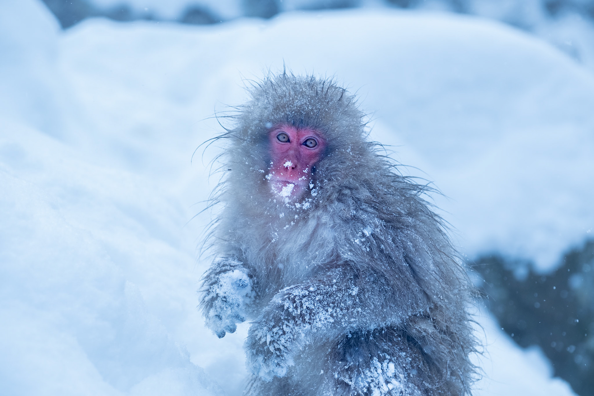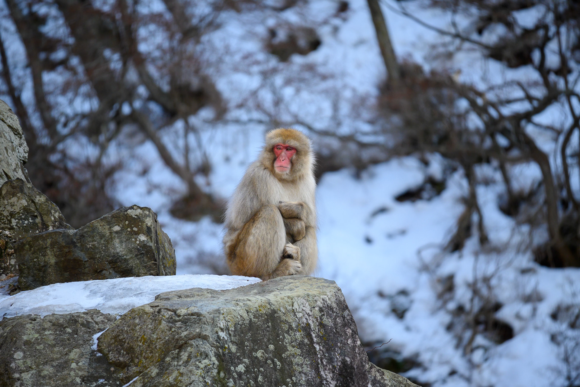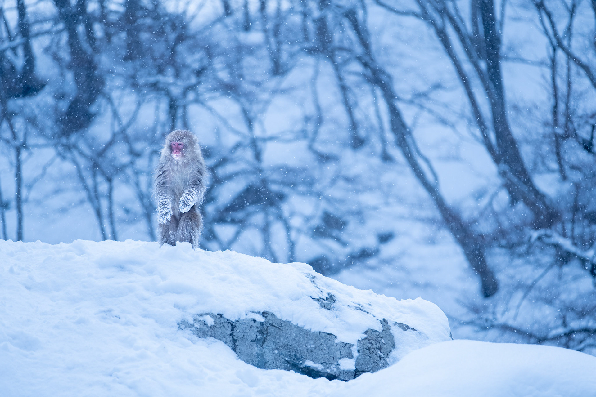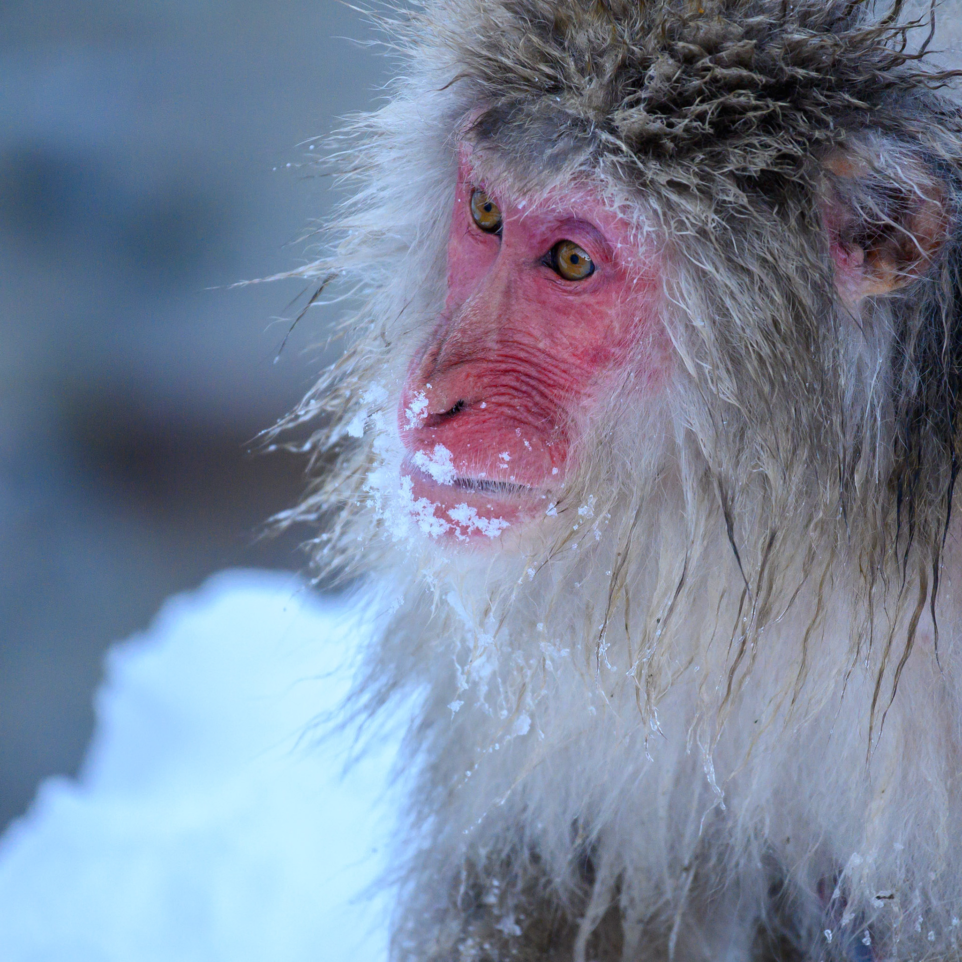 Japanese Snow Monkeys in the winter. To stay warm they often soak in the hotspring water.