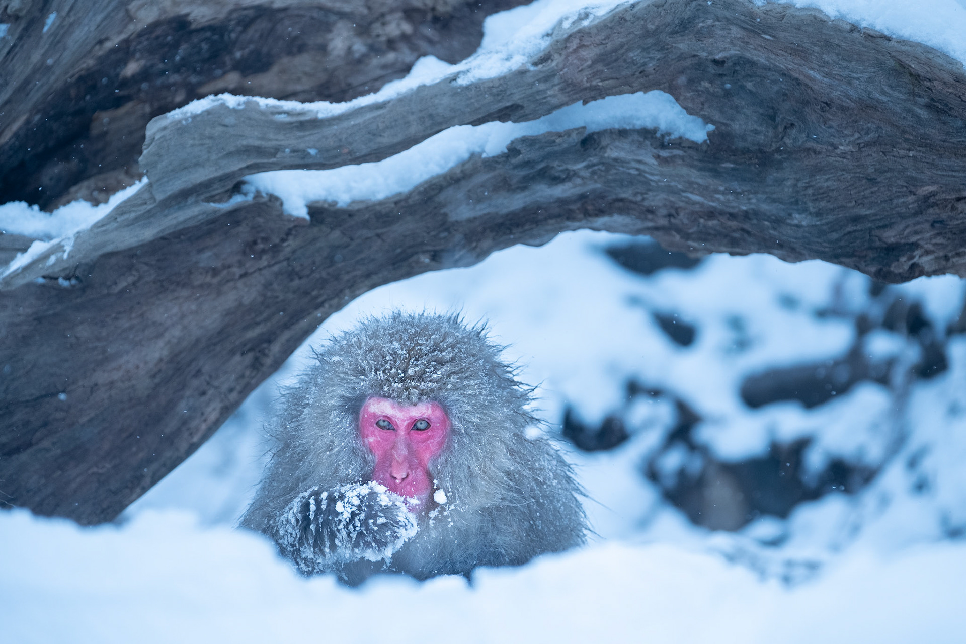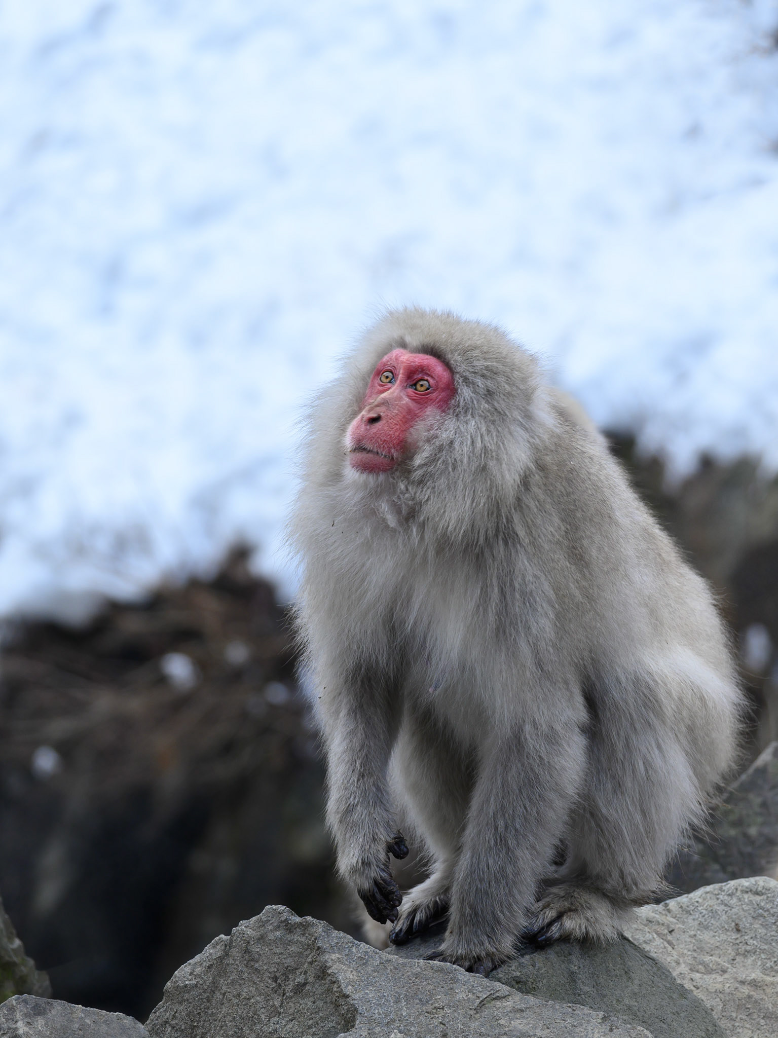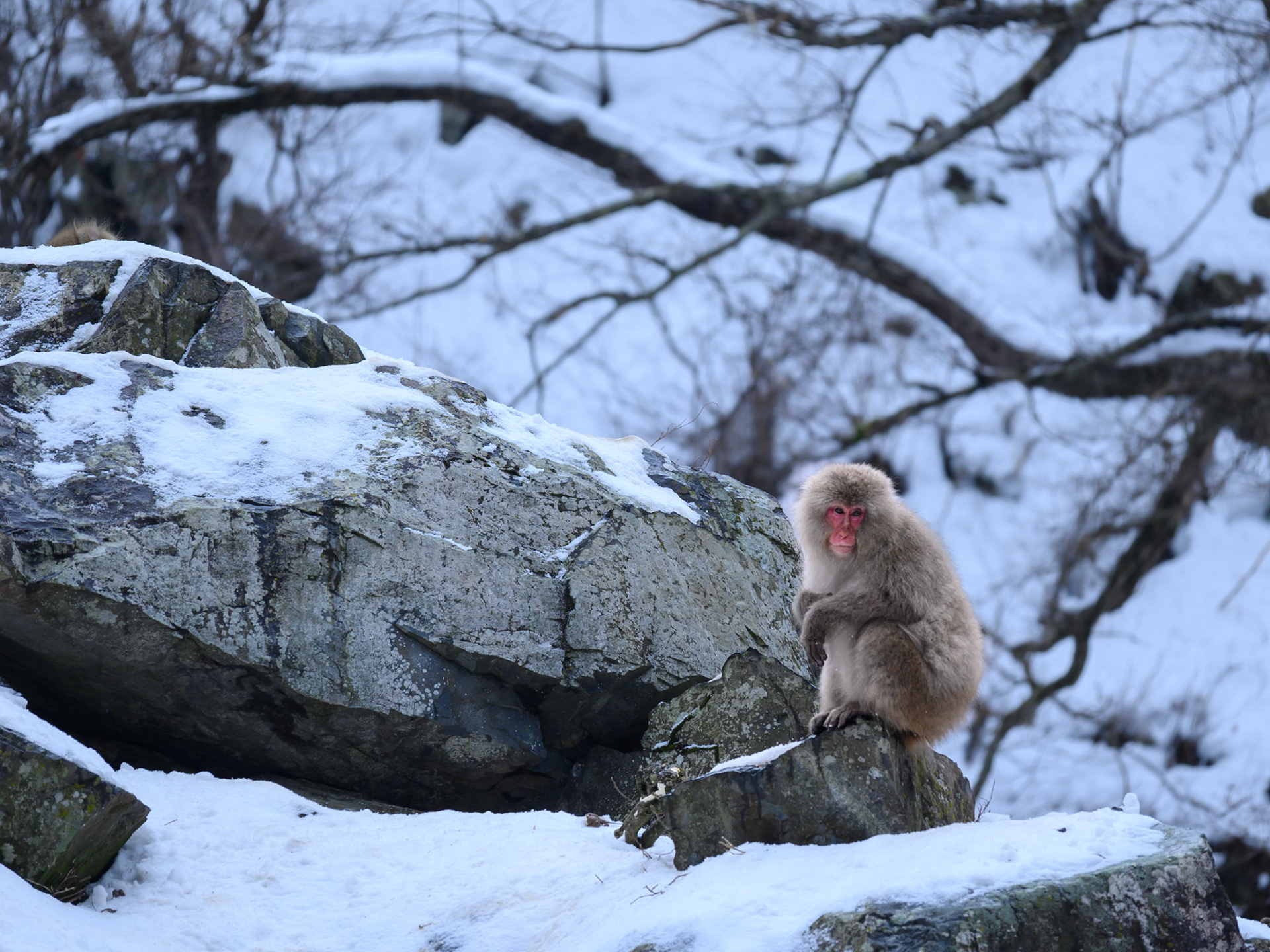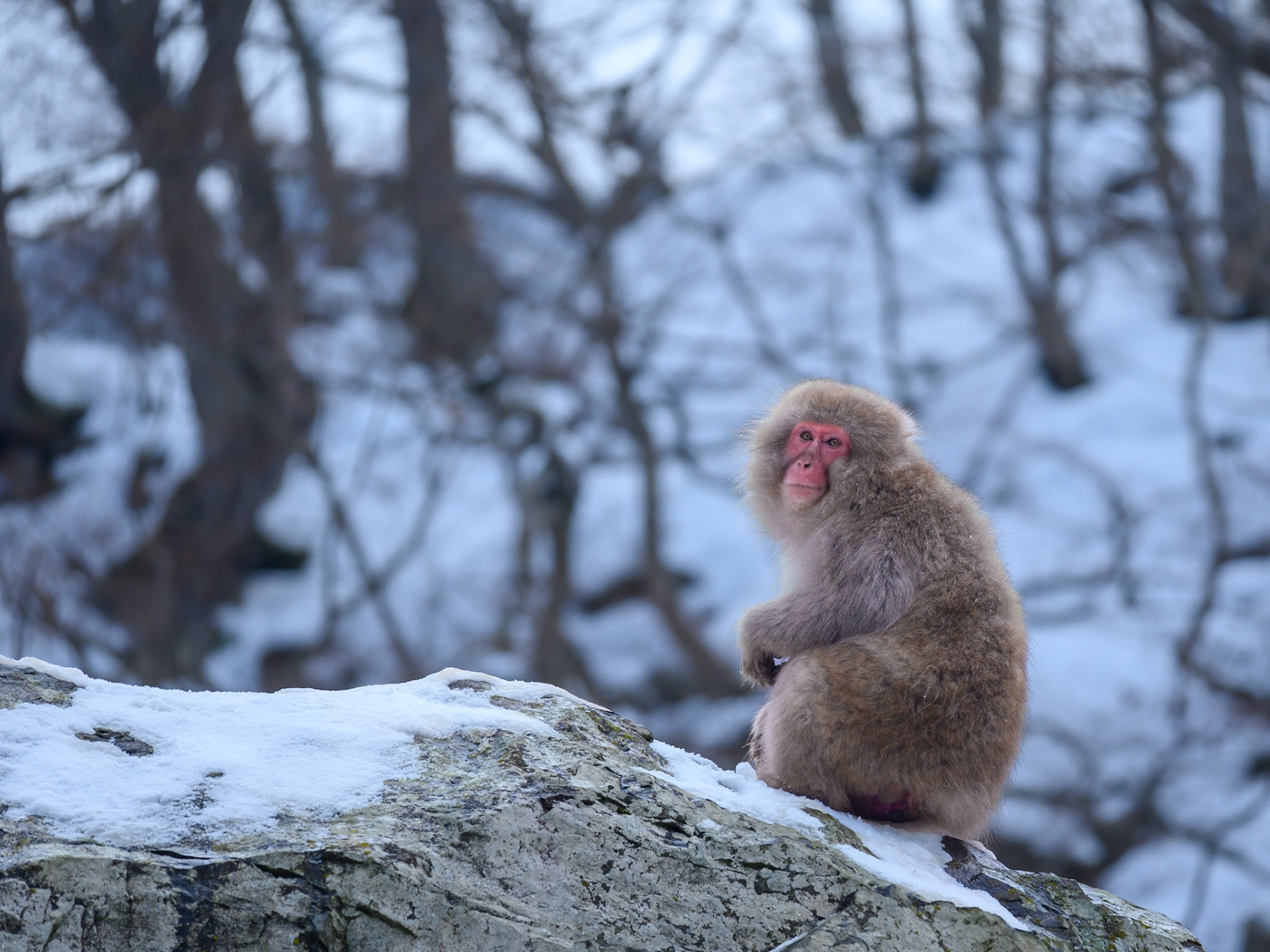 Japanese Snow Monkeys in the winter. To stay warm they often soak in the hotspring water.
