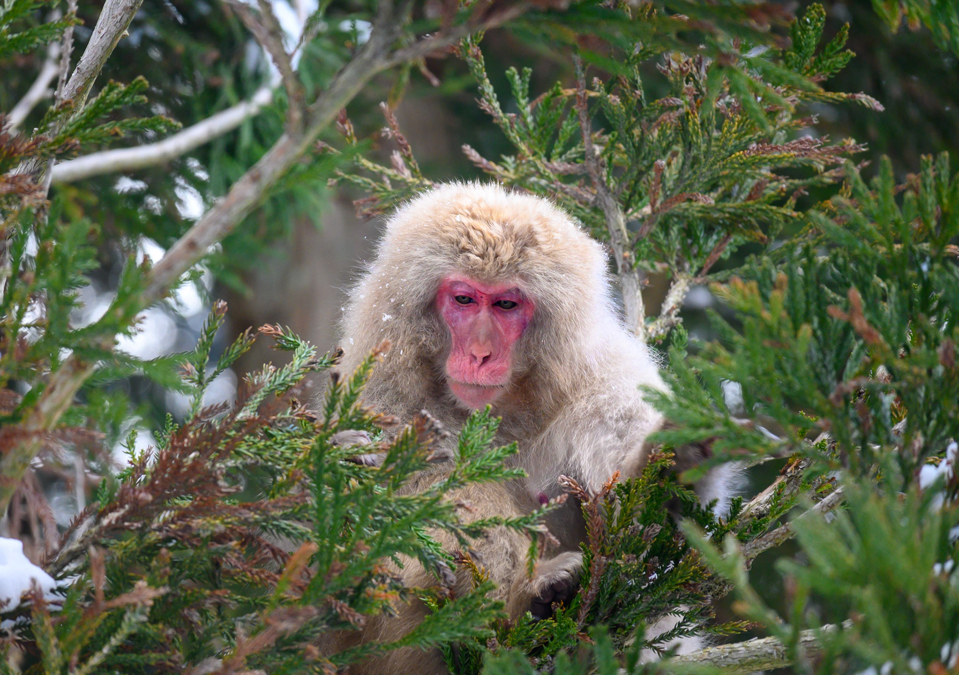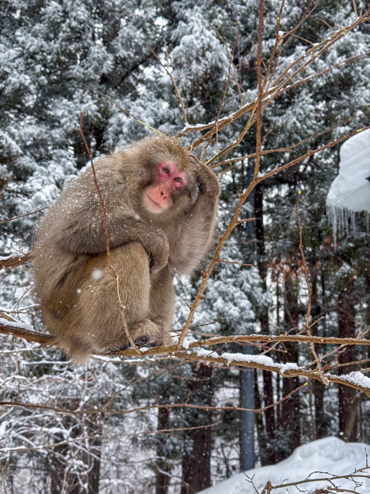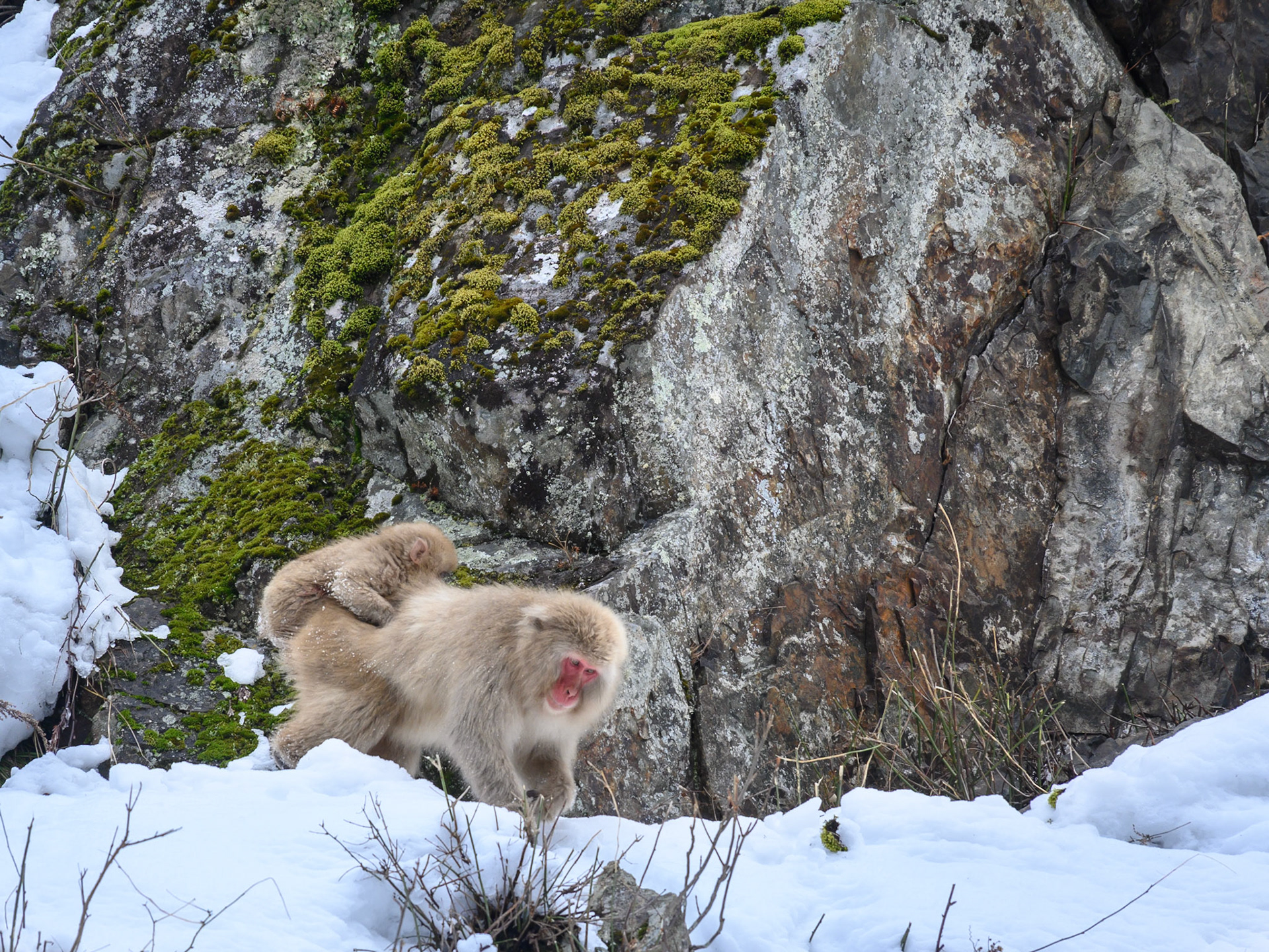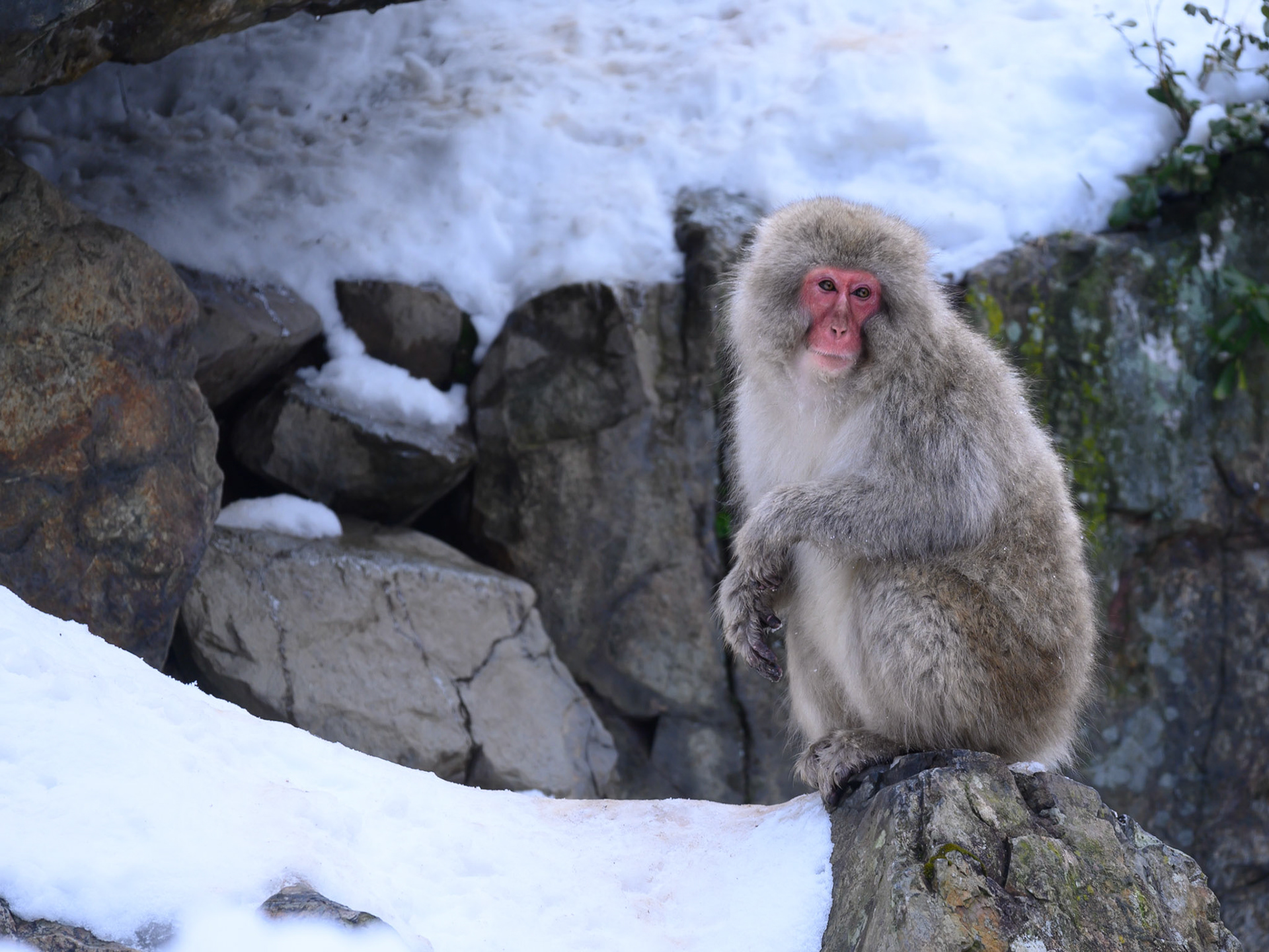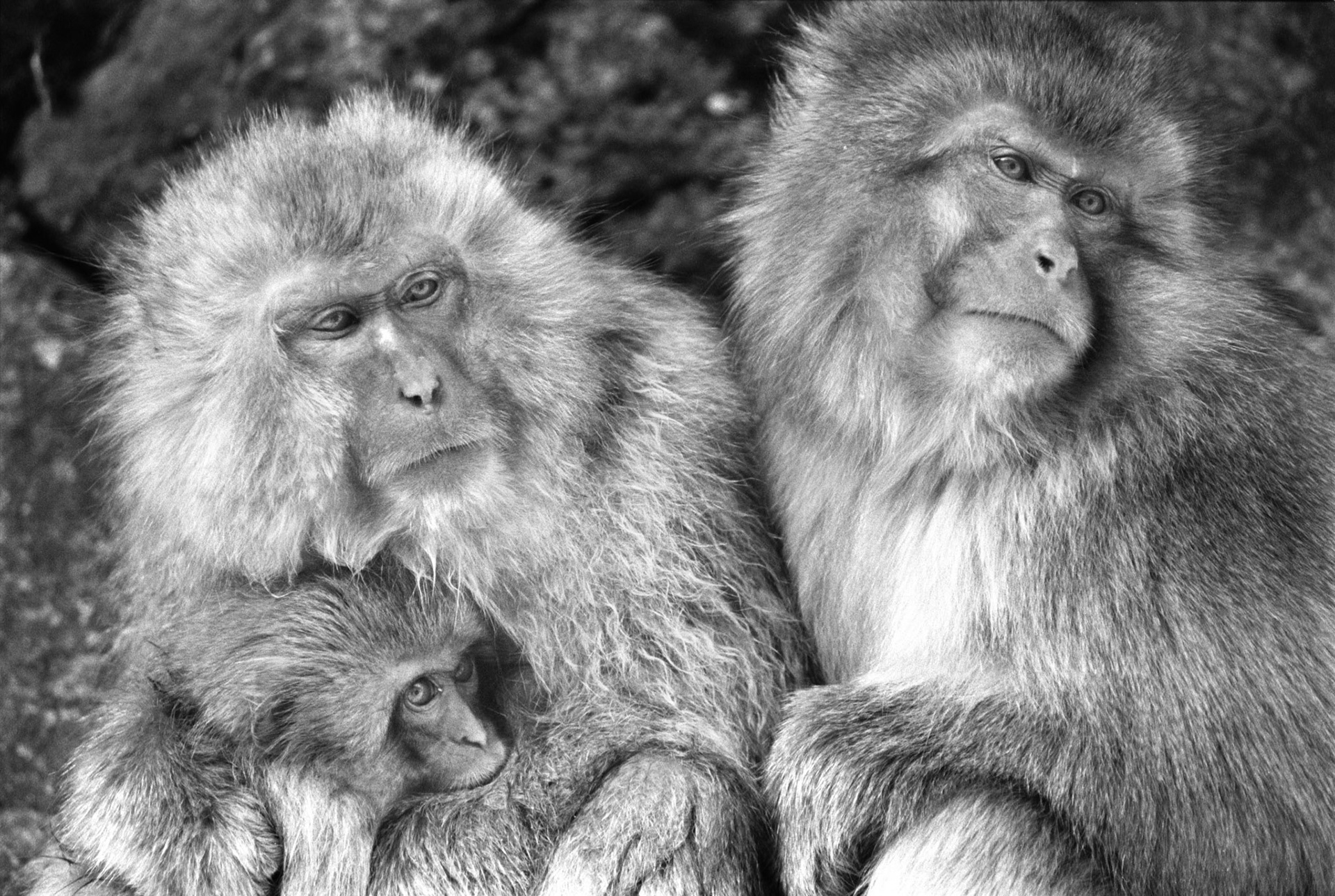 Japanese Snow Monkeys in the winter. To stay warm they often soak in the hotspring water.